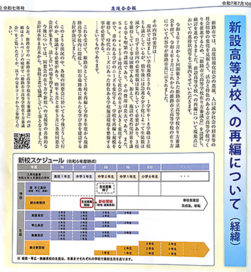 姫路市立飾磨高等学校「新校スケジュール」及び「同窓会の在り方について」