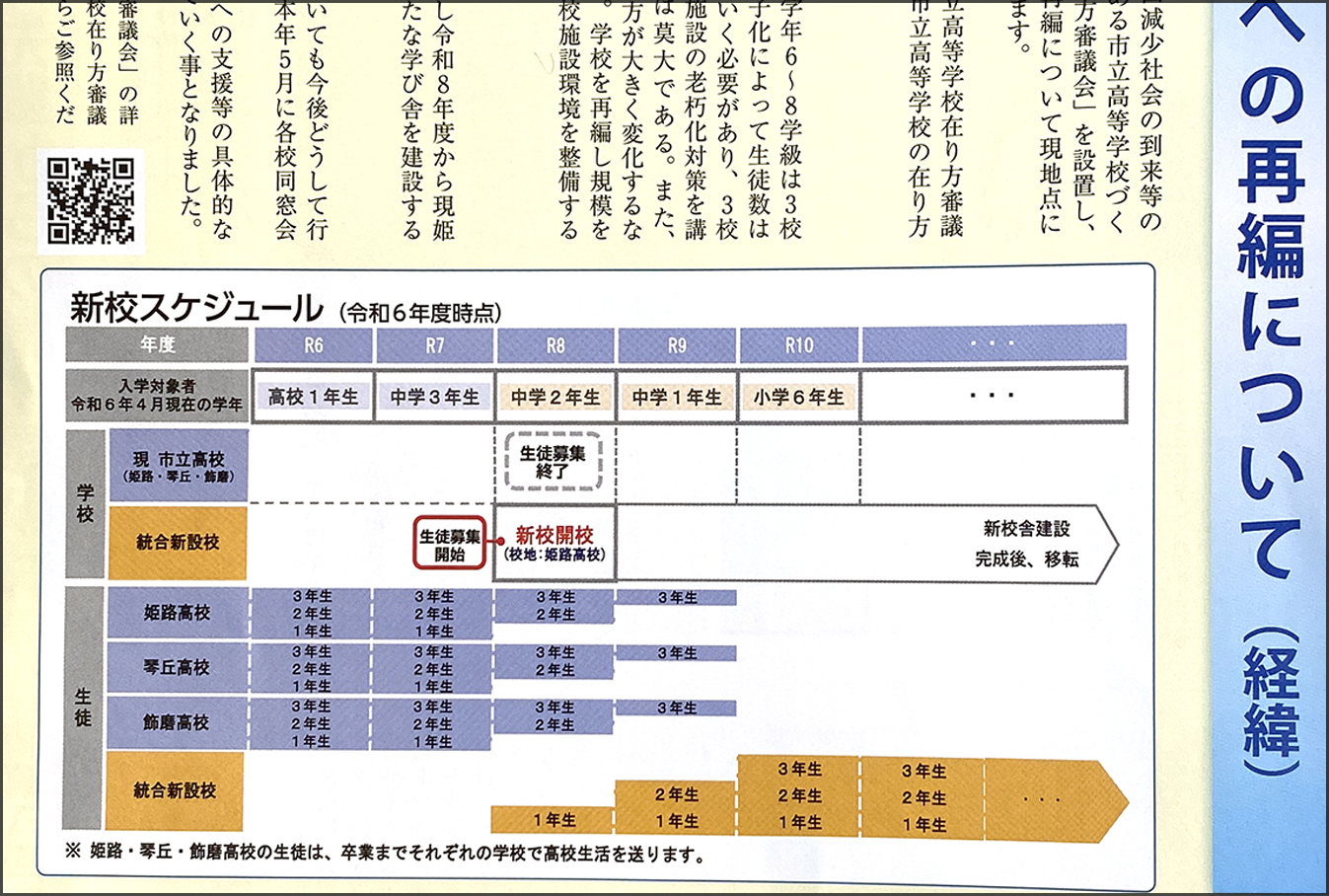 新設高等学校への再編について(経緯)、同窓会 会報紙「令和7年号」で、新校スケジュールを案内しております。